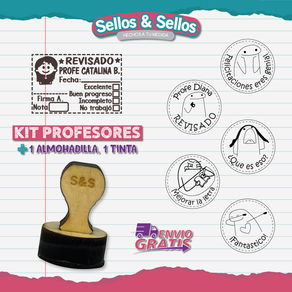 🏷️ Kit de 6 Sellos Creativos para Profesores – Personalizados y con Almohadilla Gratis